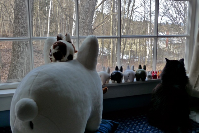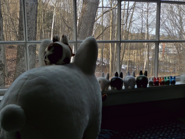 The labbits have paws and whiskers crossed that there will be at least 16" of snow. SNOW! Maybe they should be doing a snowdance instead of parking their labbit butts by the window.